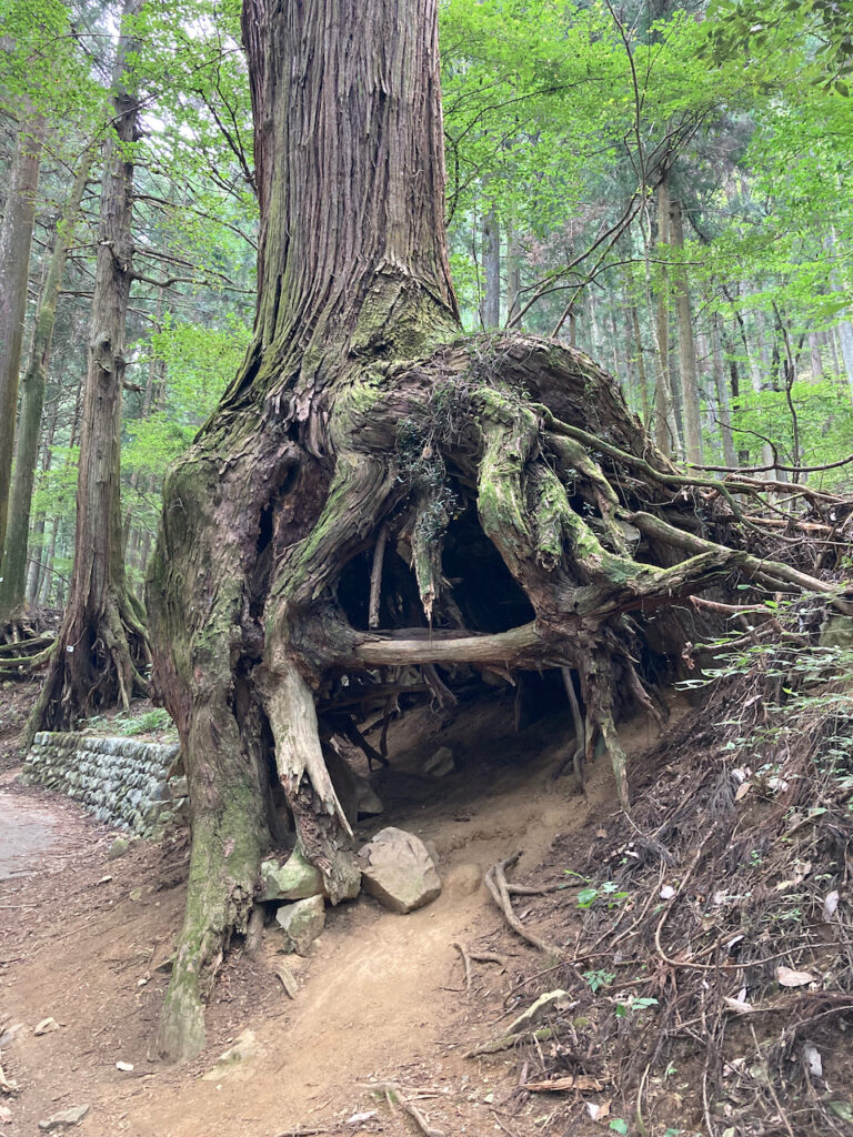 From Mt. Mitake station, which is designed to look like a Buddhist temple, you can catch a bus partway up the mountain to a cable car that will then take you almost to the summit, but Mr Brighton and I decided to walk all the way, which a group of high school students who we met at the cable car station were very impressed by. The climb was indeed steep, but it was a paved road rather than a path, because the top of Mt. Mitake is complex of temples, shrines, souvenir shops, restaurants, and even guest houses. Along the way we saw a large snake slither across the road and half-roll down the steep bank beside it. A tell-tale bulge in its belly was evidence that it had recently eaten, so we were unlikely to be attacked, although at the visitors’ centre near the summit, we were told that it was a tiger keelback – the most poisonous to be found in these parts.
